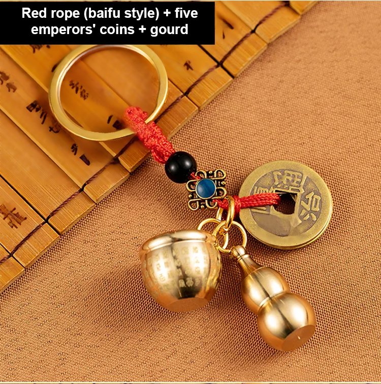 Color: Red string (Wealth and Prosperity) + Five Emperor Coins + Gourd, Red string (Hundred Blessings) + Five Emperor Coins + Gourd, Red string (Single Character) + Five Emperor Coins + Gourd