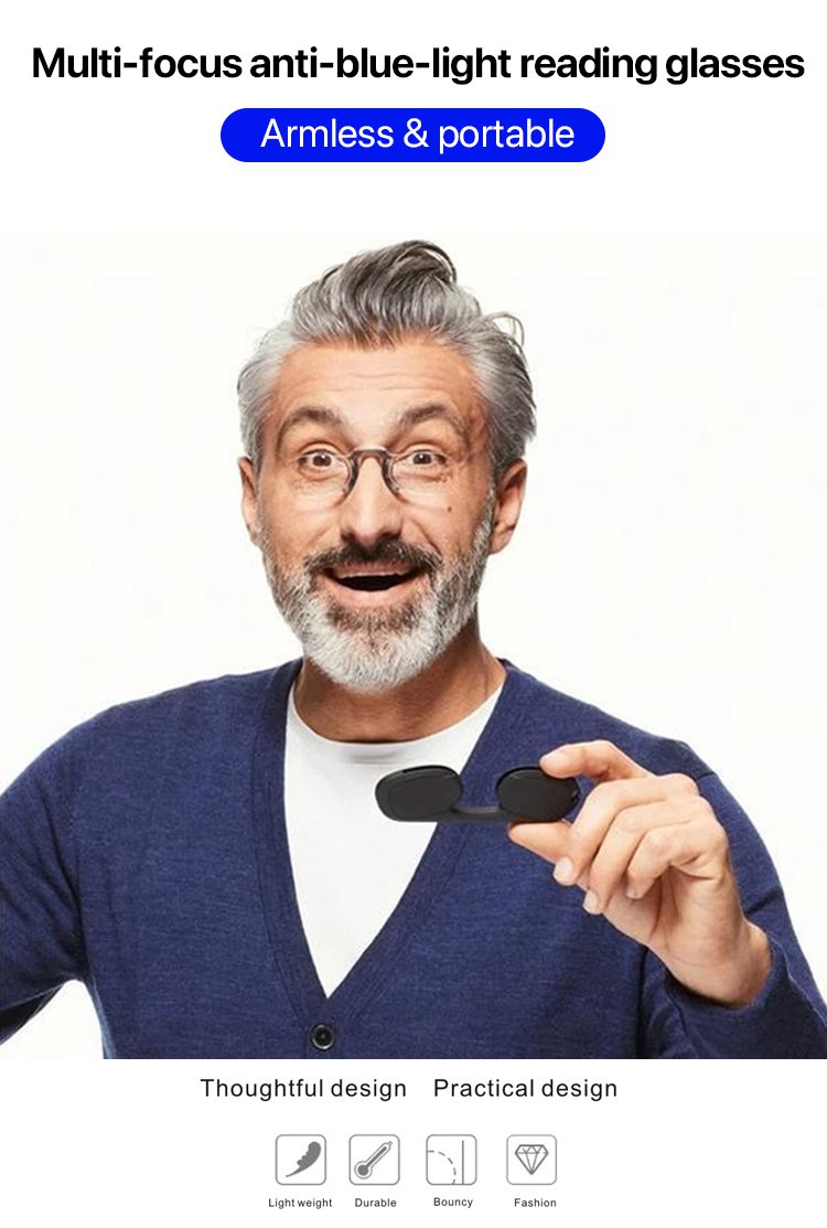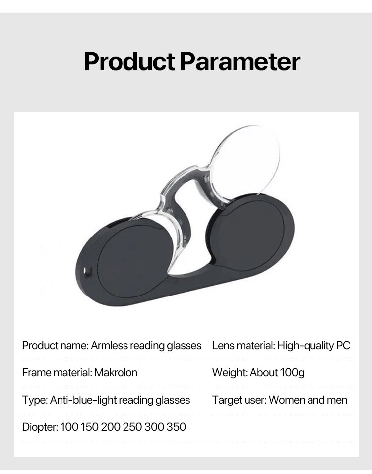 ● Compact and portable, these armless glasses easily slip into any pocket or bag, ensuring you always have stylish, practical vision support wherever you go.